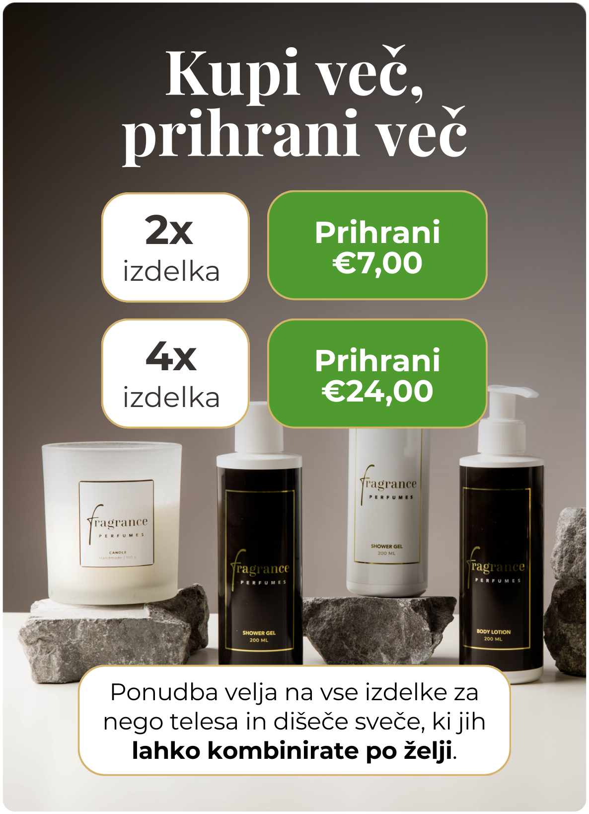 Odkrijte naše dišeče sveče, navdihnjene po vaših najljubših parfumih. Ustvarite čarobno vzdušje in napolnite dom z omamnimi vonji, ki vas bodo razvajali vsak trenutek